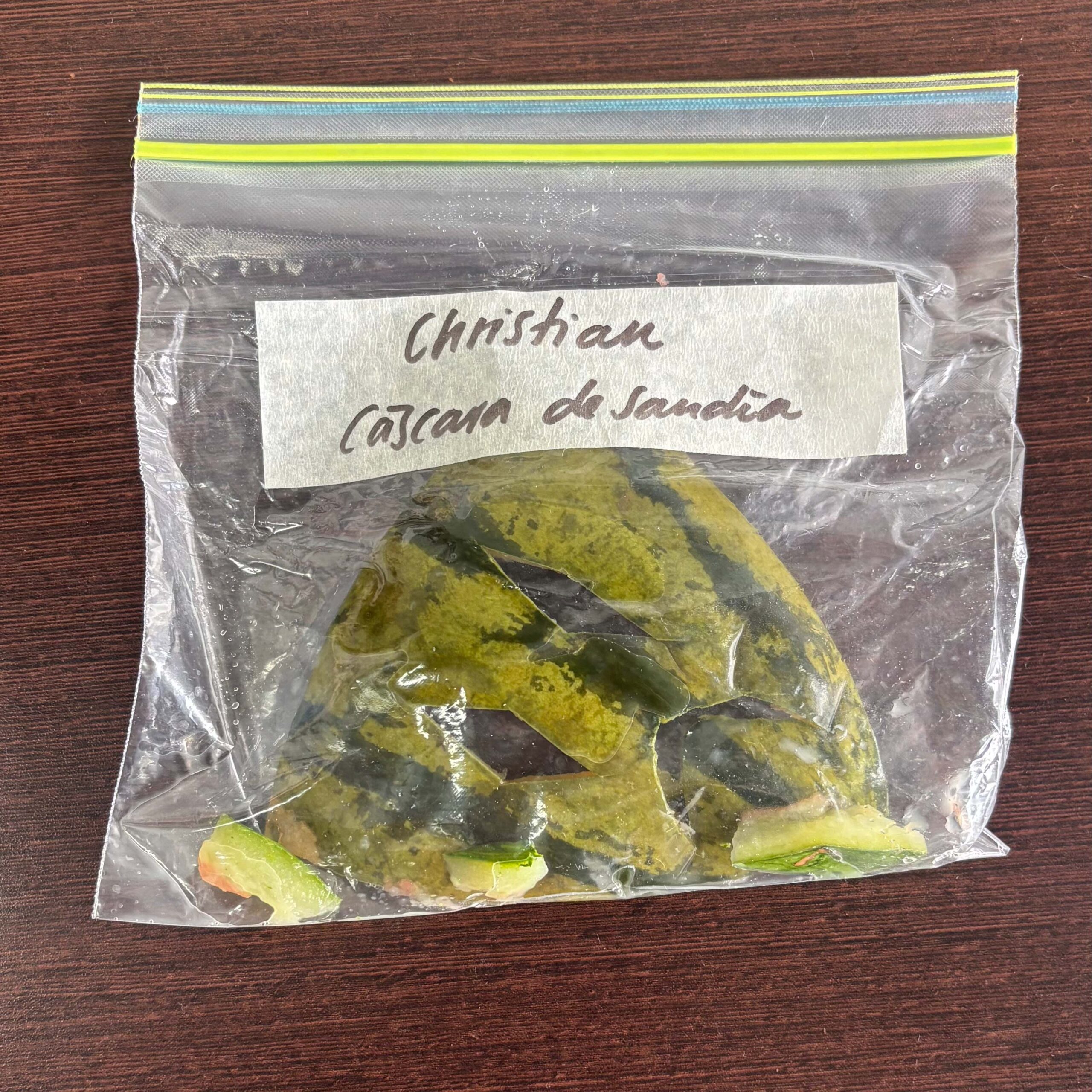 Explorar la cáscara se sintió como un ejercicio de desaprendizaje. Claro, mis asociaciones a ella son valiosas pero el decidir que era para mí la sandía y qué hacer con ella, solo con lo que yo creía saber de ella, era insuficiente. Más allá de eso, no bastaba con tocarla, verla u olerla: tenía que suspender la idea de “piel dura, verde, desechable” que cargaba desde siempre. Tenía que permitir que mi cuerpo la conociera primero a través de mis sentidos y, por lo tanto, después pensarla y sentirla diferente. En ese gesto empezaron a surgir asociaciones: unas venían de lo que ella es; otras de lo que no es; y otras de lo que podría llegar a ser. Y es ahí donde la exploración se volvió reconocimiento, pero también cuestionamiento. Preguntarse qué más puede una cosa ser no es quizá un método académico tradicional al que esté acostumbrada, por eso para mí terminó siendo lo más retador que hice en el semestre.