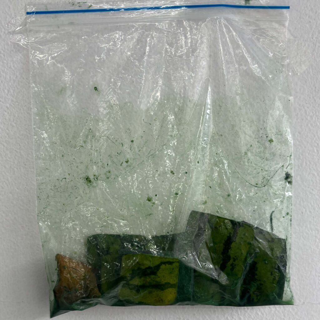 Mientras intervenía la cáscara —cortar, lavar, raspar, tallar— me di cuenta de algo que no había considerado antes: este proceso me incluía a mí. No era una observadora distante, un agente pasivo que solo espera el cambio de la materia. Todo pasaba a través de mí: mis manos, mi idea del material, mis prejuicios, mis preguntas. La materialidad no es solamente algo que la materia “tiene”, sino algo que ocurre en el encuentro. Quizá por eso fue tan importante entender que mi objeto de estudio era “la cáscara de sandía”, sino el platicar con esa parte relegada de solemos descartar sin pensarlo, la cáscara.